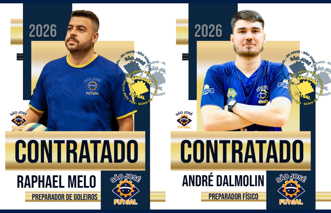 Seguindo a reformulação da equipe para a Temporada 2026, a diretoria do São José Futsal anuncia dois novos nomes que farão parte da comissão técnica. Tratam-se de André Dalmolin e Raphael Melo, que chegam para assumirem as funções de Preparador Físico e Preparador de Goleiros respectivamente. Catarinense de Timbó, Dalmolin chegou durante a temporada 2025 […]