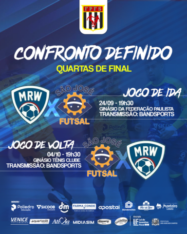 O São José Futsal joga as Quartas de Final do Campeonato Paulista contra a equipe do MRW / Praia Grande. Serão dois jogos, sendo o primeiro já nesta terça-feira, 24, às 19:30h, no ginásio da Federação, em São Paulo. A partida contará com a transmissão da BandSports. O segundo e decisivo confronto será na […]