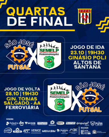 O caminho do São José Futsal nas Quartas de Finais do Campeonato Paulista já está trilhado! A equipe joseense enfrenta o Pinda Futsal na próxima fase e já sabe os dias e horários dos confrontos. 5º colocado na primeira fase, a equipe comandada pelo técnico Gabriel Oliveira passou pela Wimpro de Guarulhos na Fase Pré-Quartas […]