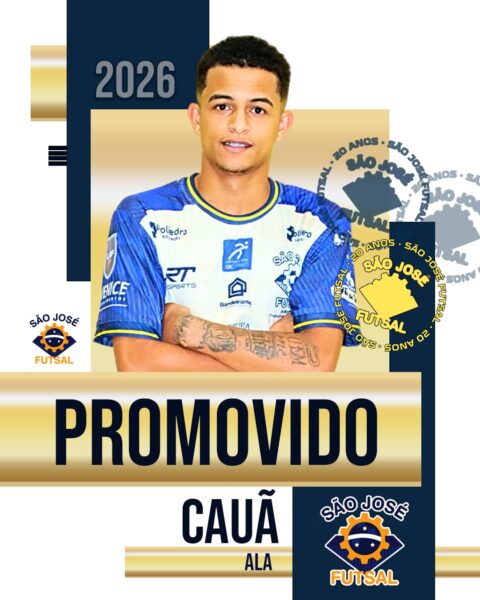 A diretoria do São José Futsal anuncia mais um reforço para a temporada de 2026. Após belíssima temporada atuando nas categorias adulta e Sub-20, o ala Cauã agora integra oficialmente o time adulto.